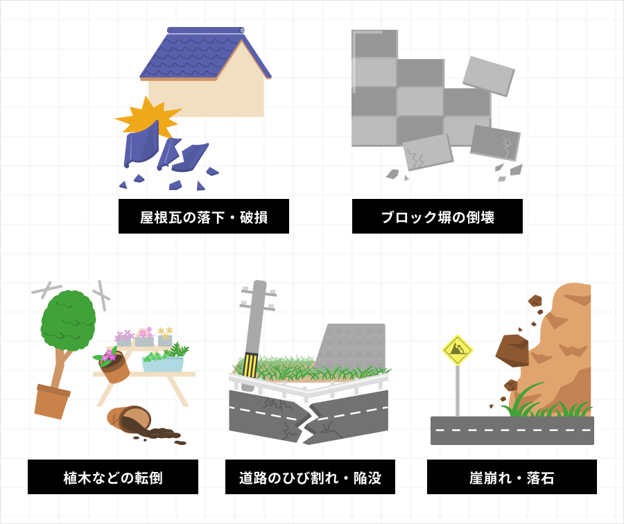 地震の揺れによって引き起こされる火災・土砂崩れ・ガス漏れ・停電・断水・インフラの寸断などは、命に関わる大きなリスクです。