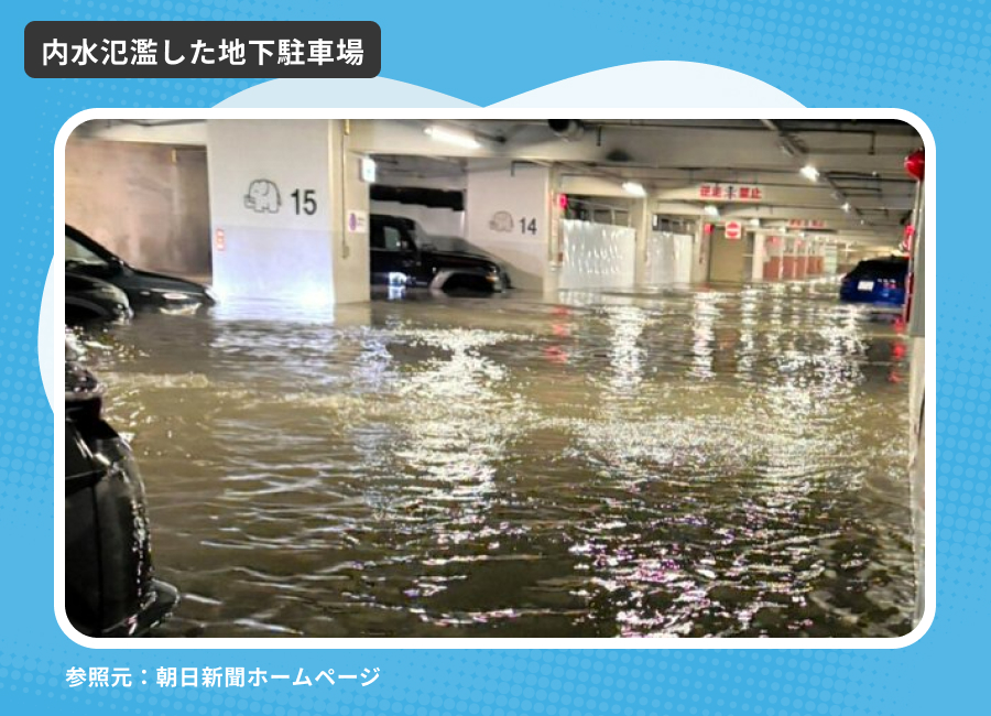 地下には行かない: 雨がひどい時は、地下駐車場(ちかちゅうしゃじょう)や地下にあるお店には近づかないようにしようね。